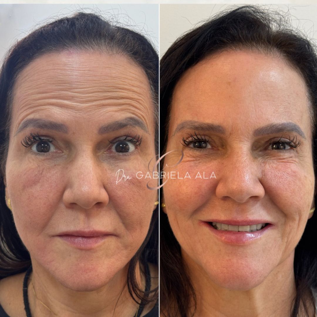 Aplicação três vezes ao ano com efeito contínuo, lifting sutil e controle das rugas mais marcadas.